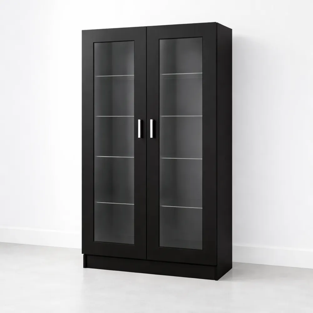 Armadio Vetrina per Soggiorno in Legno Multistrato Nero